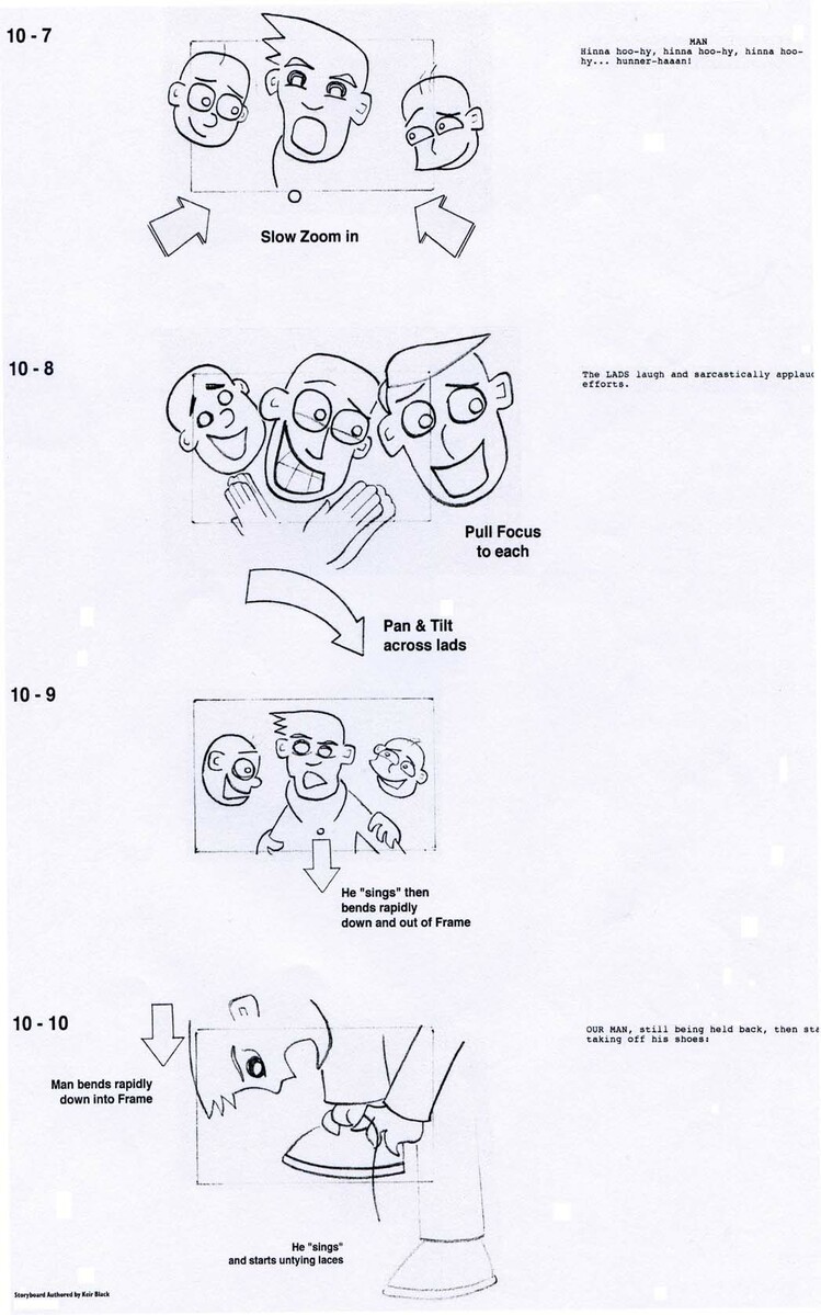 A selection of boards for the film UK Film Council-funded film SUCKER, created by Keir Black. The film featured complex action and some VFX elements, so precise communication to those involved in its production and postproduction was essential