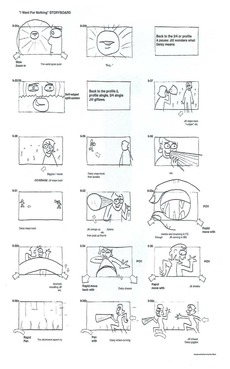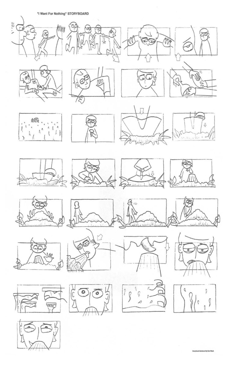 Boards selection for the film I WANT FOR NOTHING, created by Keir Black. This film involved a bigger cast, props and some unusual action, so these boards proved indispensable for planning and execution